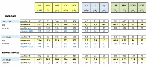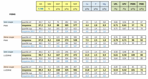 De bonnes valeurs de l’herbe en 2014, surtout en première coupe. |